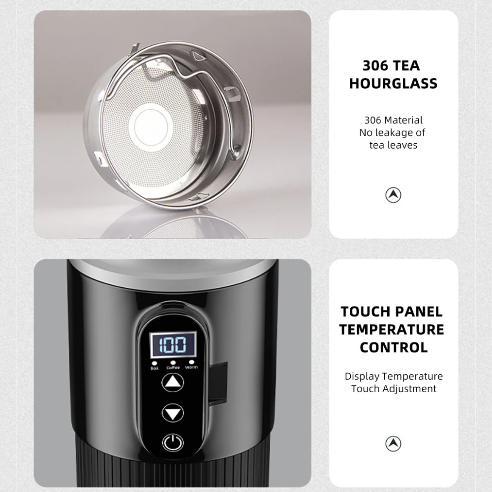 - Stainless Steel Insulation: The double-wall design keeps your beverage hot for hours after the heating cycle finishes.